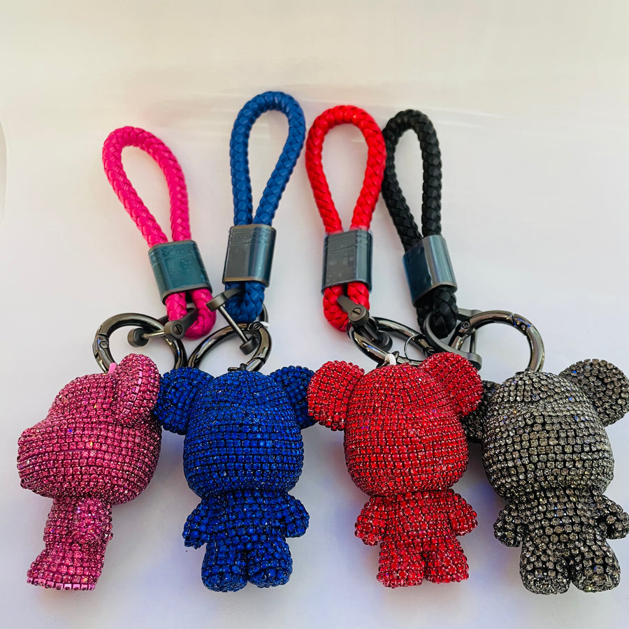 Bear keyring and bag charms, fully covered with crystal elements.