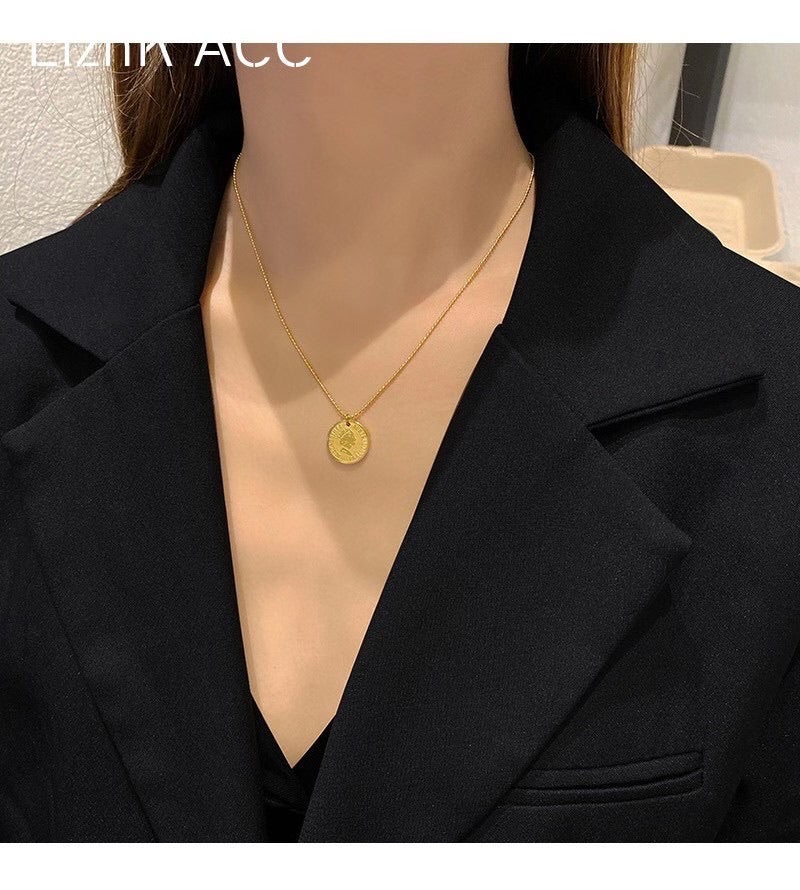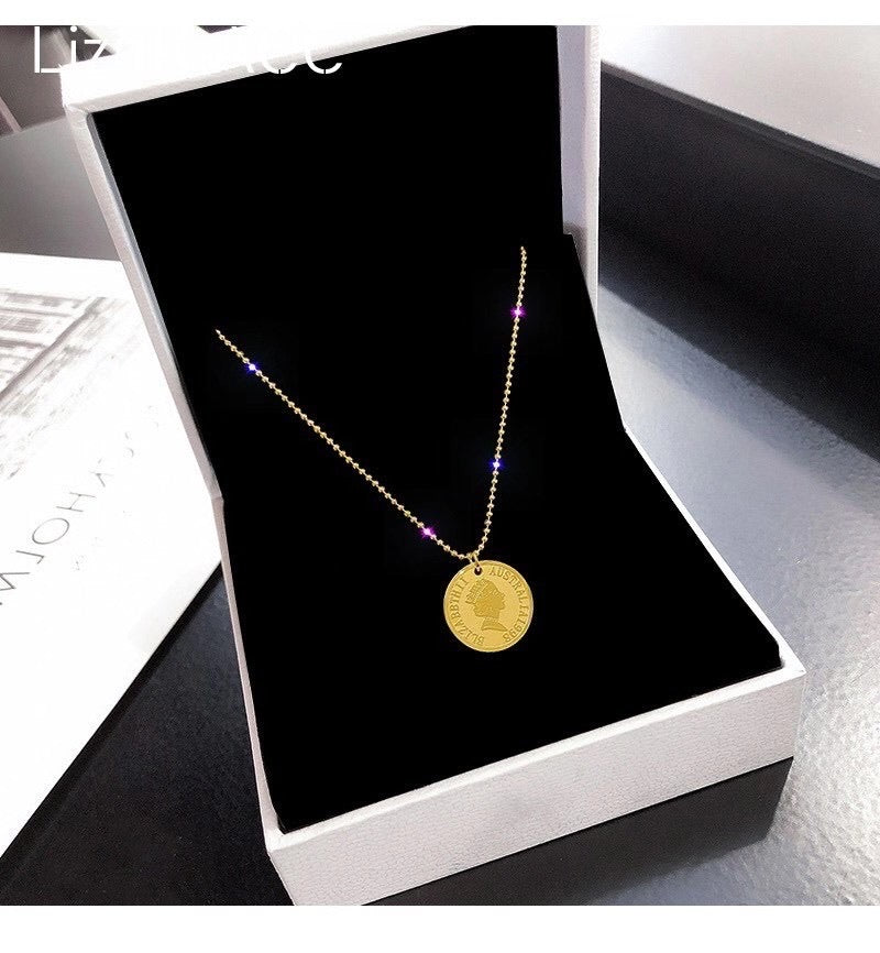 7-Degrees Exclusive Design Stainless Steel Necklace "Queen Elizabeth Coin" 7CSTNK02