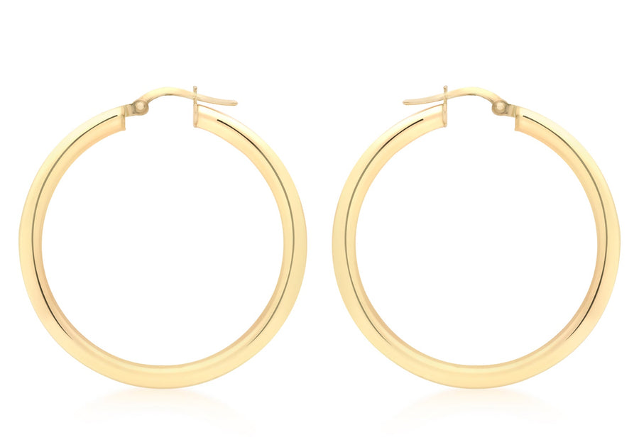 9K Yellow Gold 3mm Round Hoop Earrings 35mm
