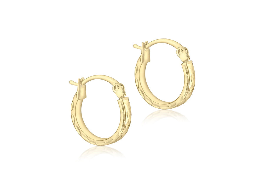 9K Yellow Gold Diamond Cut Hoop Earrings 10mm