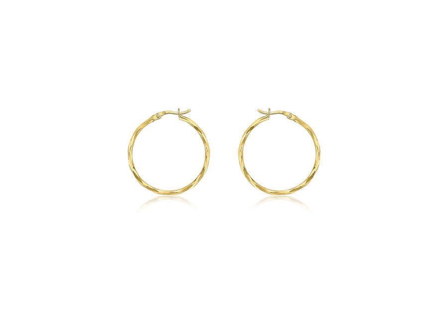 9K Yellow Gold Diamond Cut Hoop Earrings 28mm