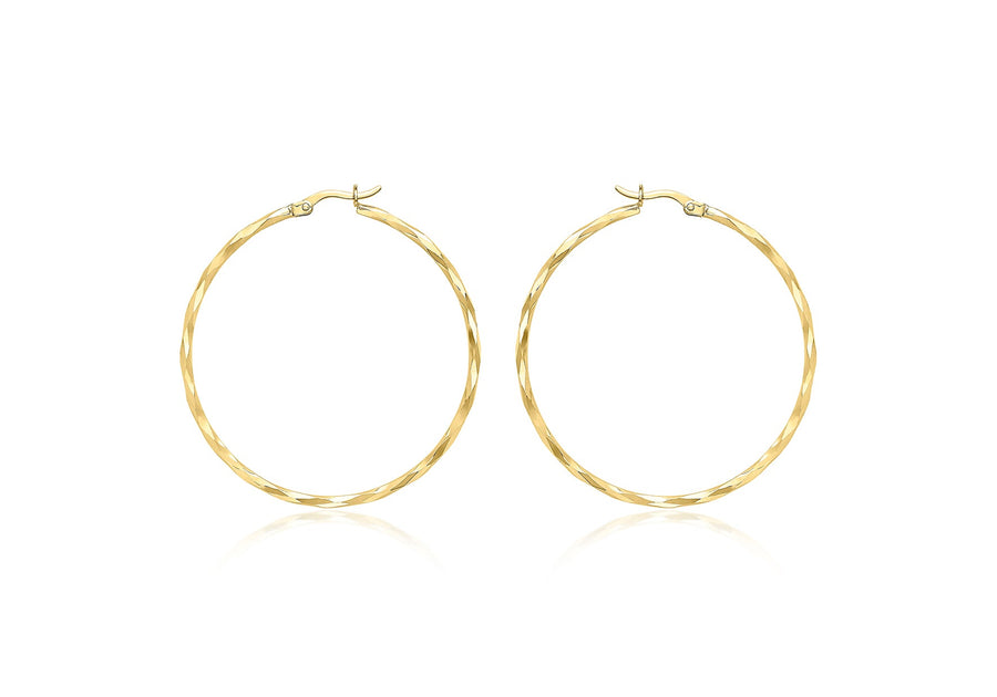 9K Yellow Gold Diamond Cut Hoop Earrings 42mm