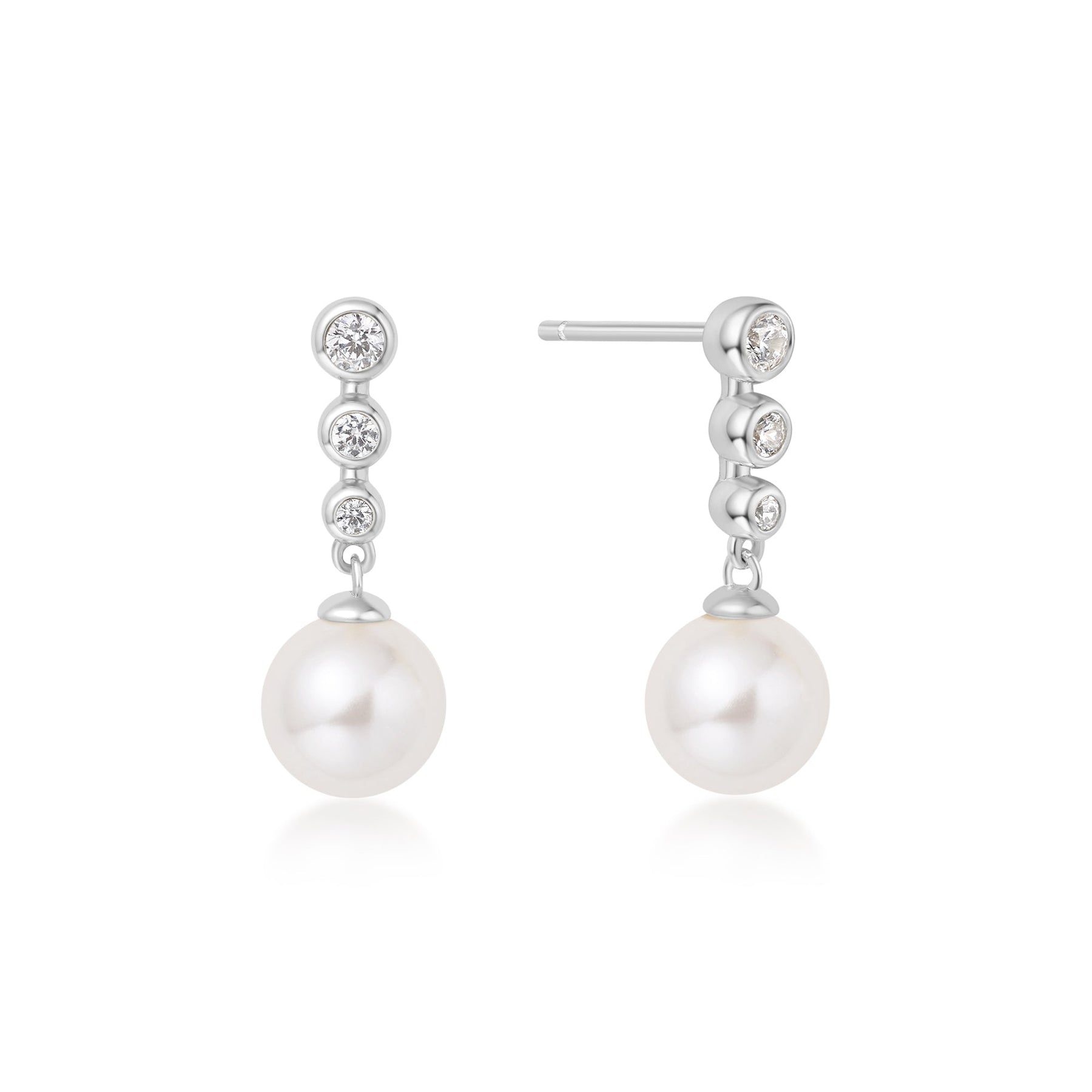 Ania Haie Silver Tennis Beaded Stone Pearl Drop Stud Earrings