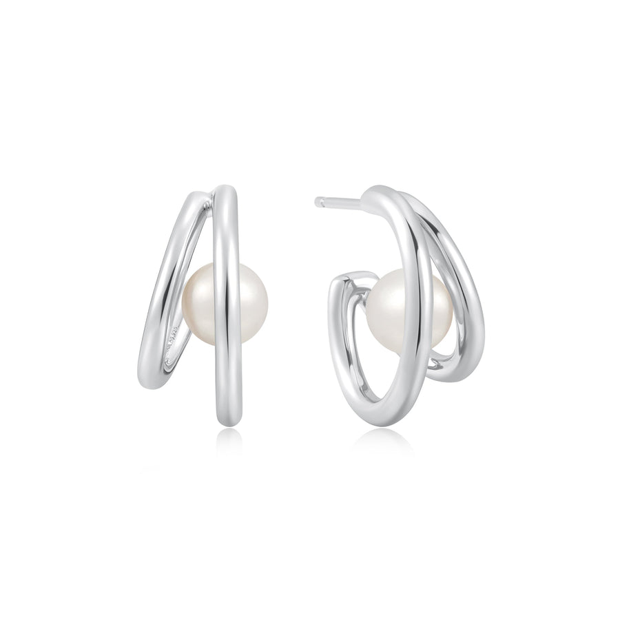 Ania Haie Silver Duo Freshwater Pearl Stud Hoops E058-07H