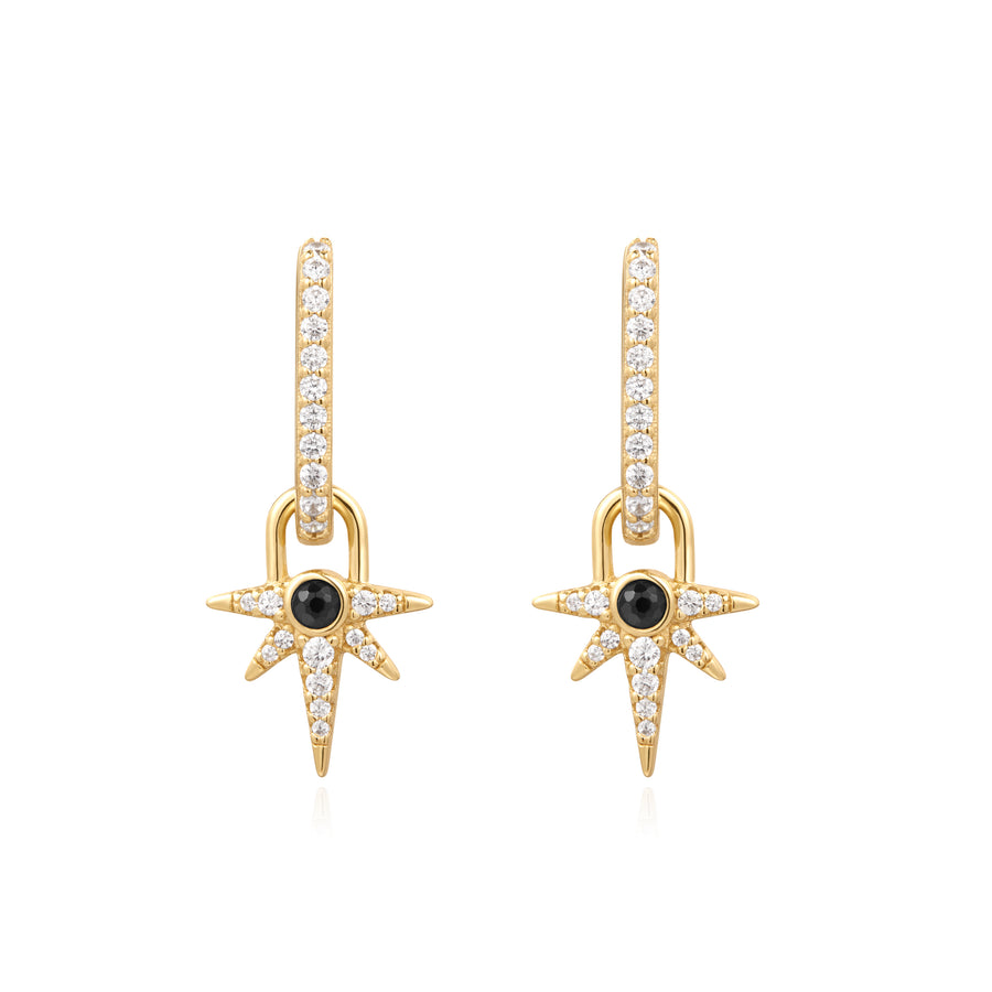 Opt for a star-inspired surprise with this striking pair of everyday huggie hoops. The stunning piece is finished with a statement star droplet and completed with a black agate centrepiece. Keep your look dazzling or style yours with a full earring stack.