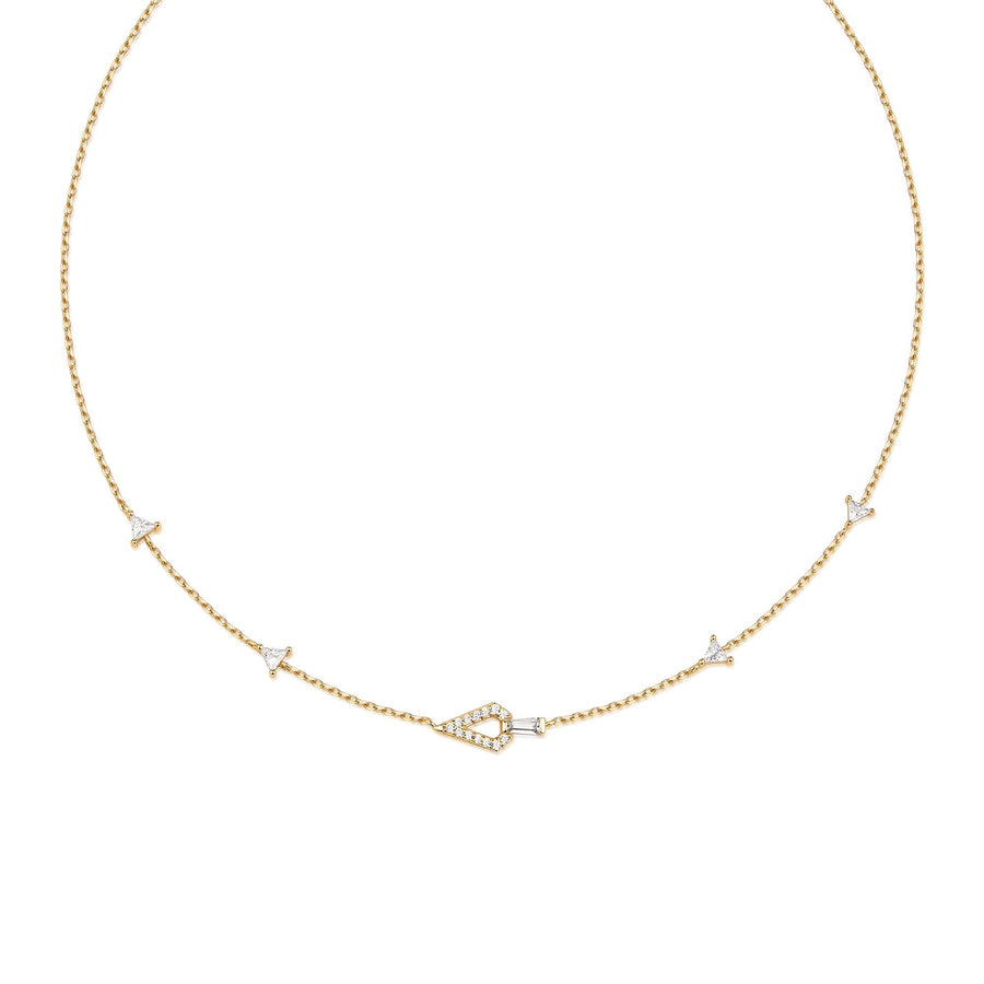 Revamp your jewellery wardrobe with our exquisite necklace. Featuring hollow and solid geometric shapes finished with cubic zirconia stones, this contemporary necklace is the perfect stacking piece for any occasion.