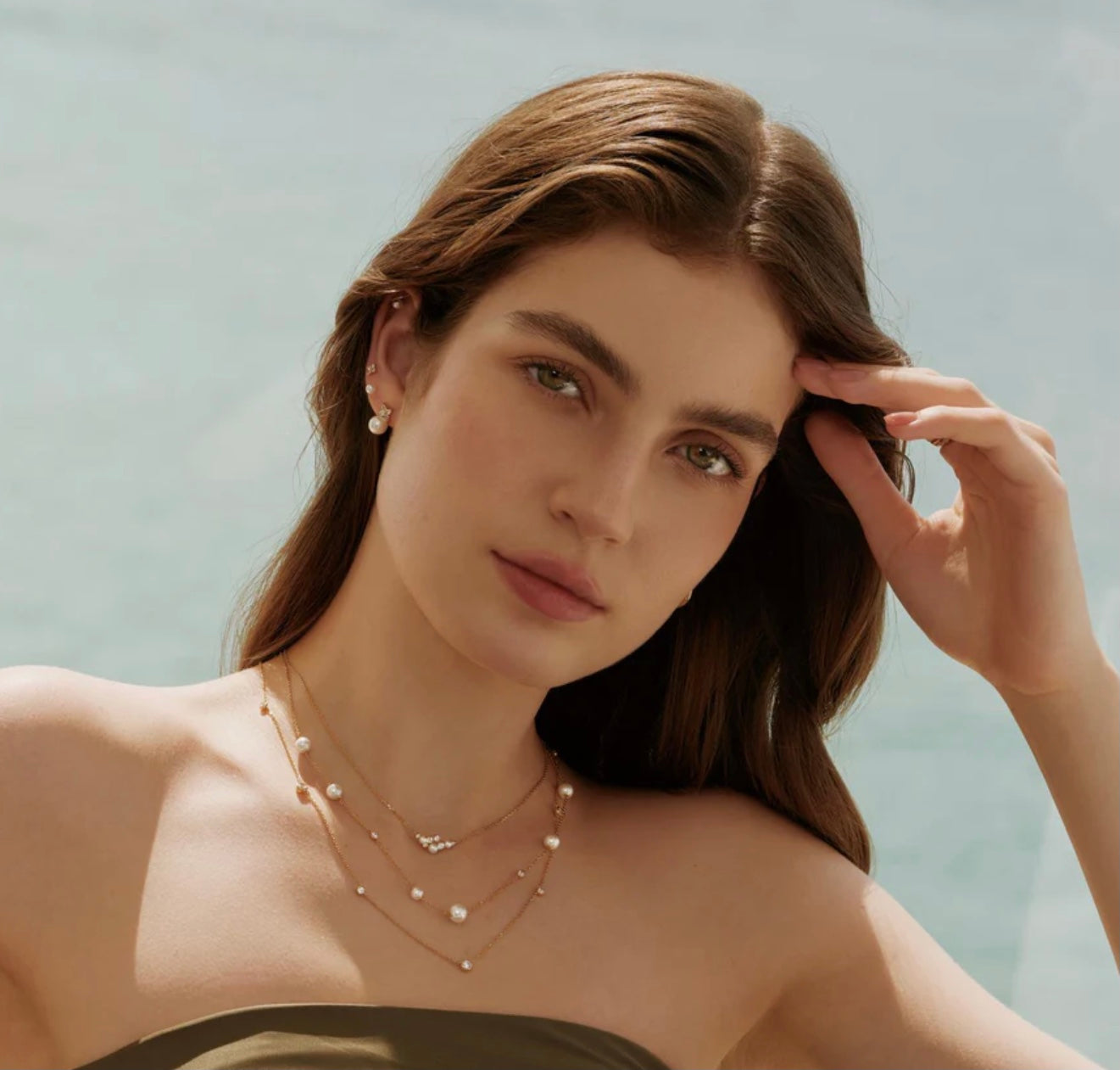 A collection for the woman who finds beauty where others merely glance. The Starlit Drops collection mirrors this perceptive nature through celestial touches: fluid droplet designs that catch the light, delicate star accents, and our signature initial necklaces from A to Z. With airy layering, these pieces capture that quiet moment when her knowing smile turns everyday scenes into something special.