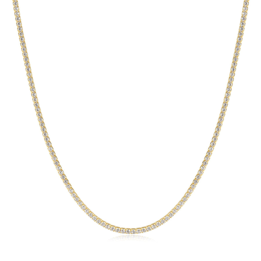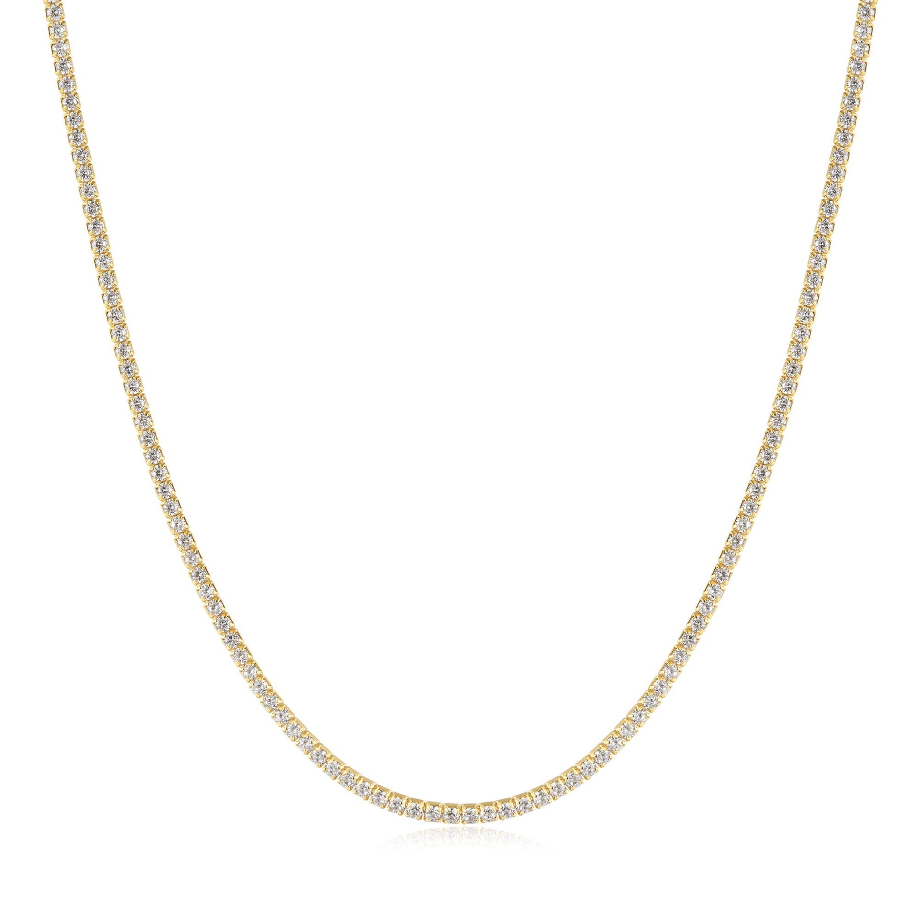 Decorated with a continuous line of cubic zirconia, this tennis necklace in 14kt gold-plated sterling silver can be your sparkling must-have. Statement enough to be worn alone or stack it with other chains for a luxe, modern look.