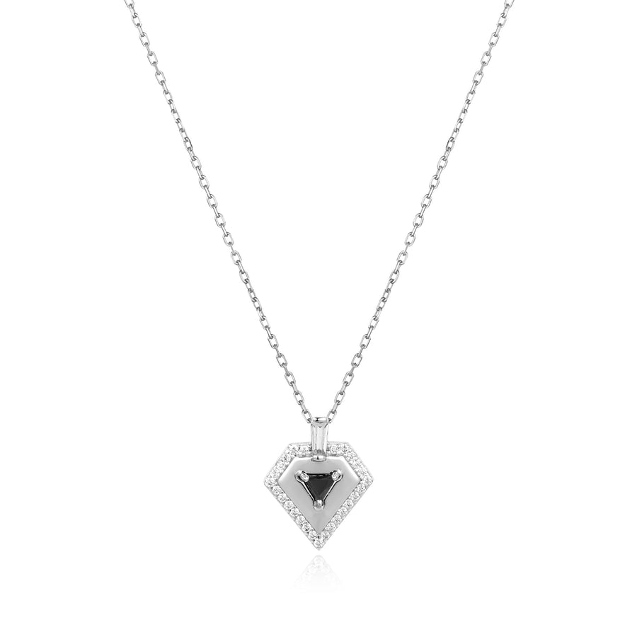 Revamp your jewellery wardrobe with our unique necklace. Featuring a diamond shaped pendant, our piece is embellished with cubic zirconia stones with exquisite craftsmanship, statement enough to be worn solo or stacked with other chains.