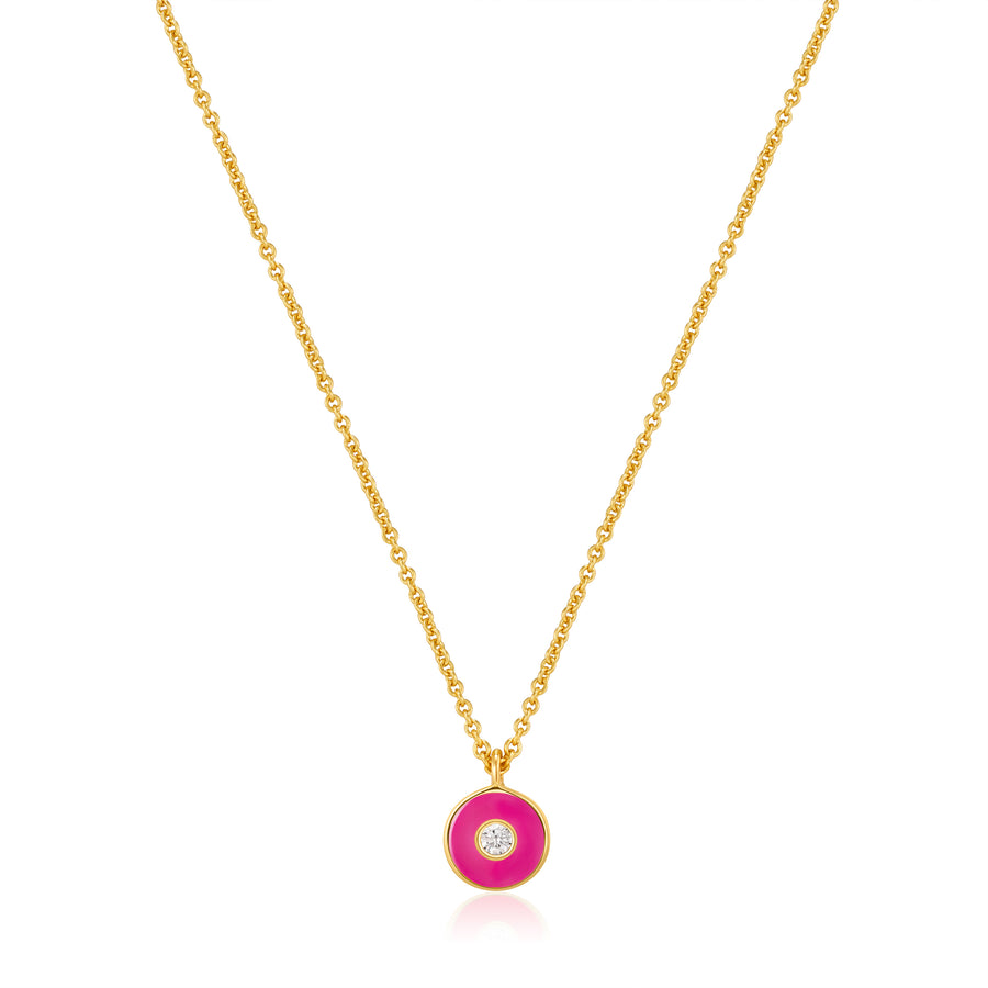 Ania Haie Neon Pink Enamel Disk Gold 40-45cm Necklace N040-02G-NP