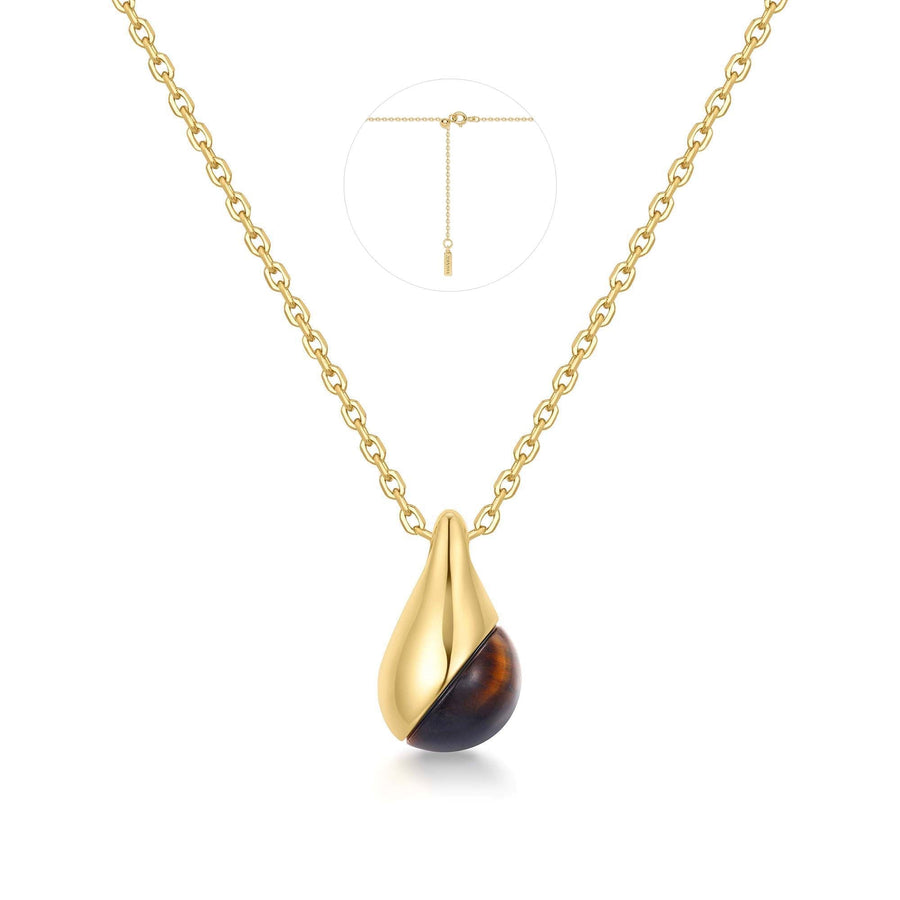 Lean into brown tones as the season's new neutrals with this tiger's eye stone necklace. The bulbous organic shapes of the tiger's eye pendent brings a sense of warmth and stability, evoking a feeling of calm and grounded confidence. Whether worn alone or paired with other necklaces, it adds a touch of natural sophistication to any outfit.