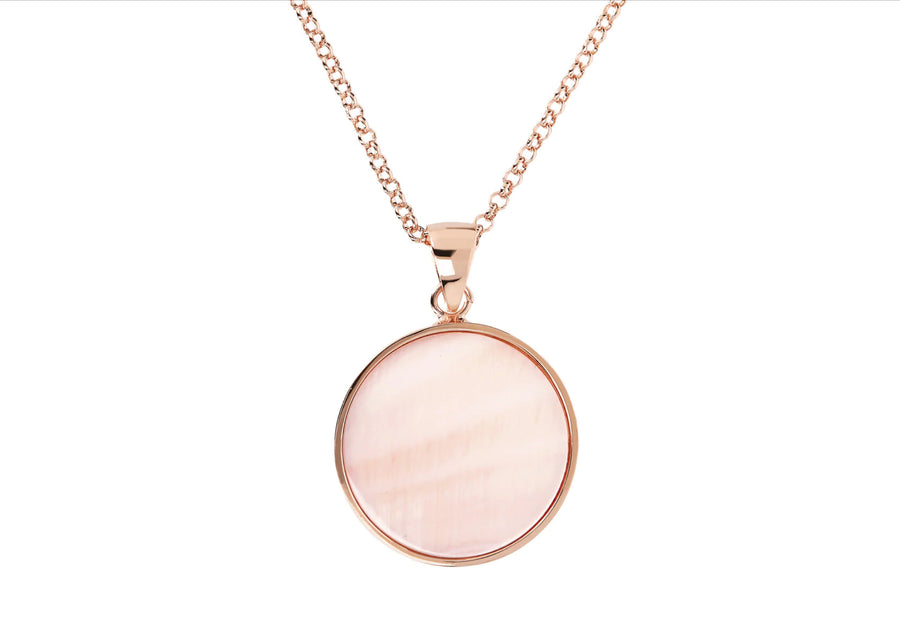 Bronzallure Alba Colored Stone Medium Disc Necklace Pink Mother of Pearl WSBZ00702.PM