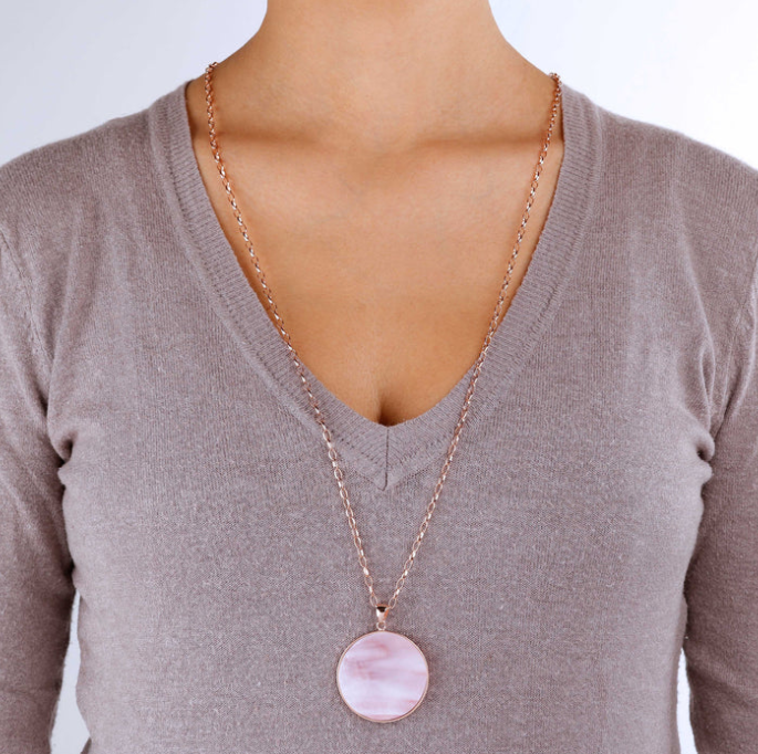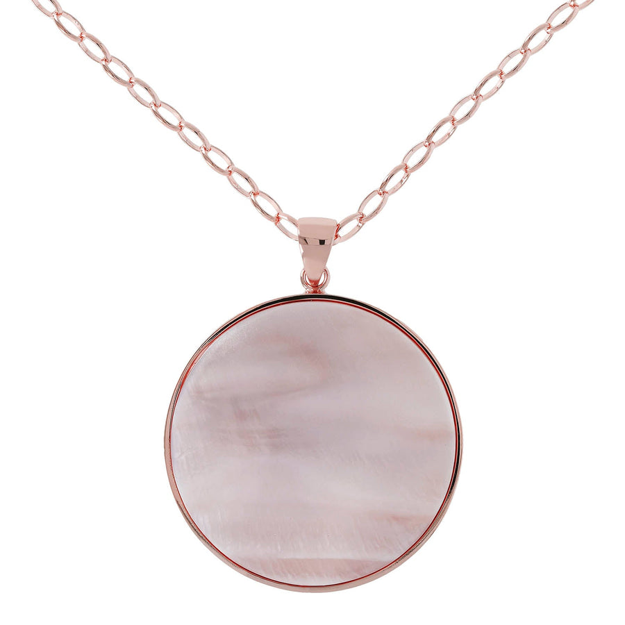 Bronzallure Alba Stone Maxi Disc Long Necklace Pink Mother of Pearl WSBZ00708.PM