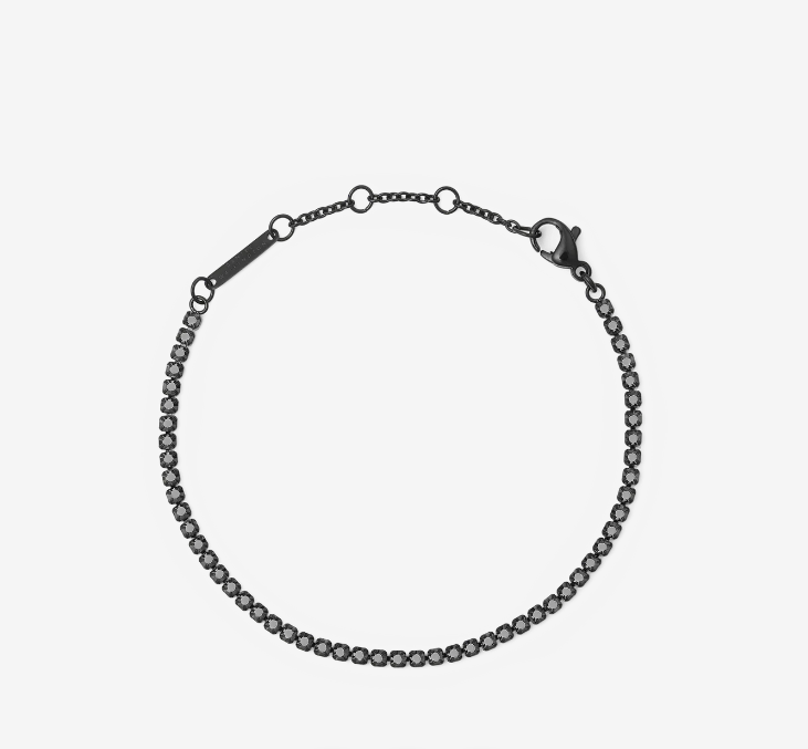 With sleek black steel and shimmering dark crystals, this bracelet is comfortable and chic, effortlessly taking you from morning meetings to late-night cocktail hours. To achieve greater durability, each black crystal is individually set and tightly secured. The chain itself is crafted from high-quality 316L stainless steel and features sizing rings to always fit you perfectly. The Black Crystal Tennis Bracelet is also a great team player, so pair it with your favorite Daniel Wellington watch or bracelets.