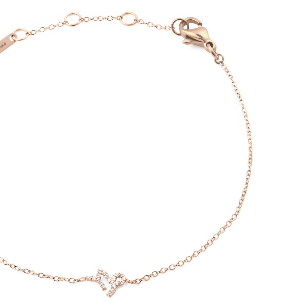 Take this as a sign from the stars: it’s time to add some celestial energy to your look. This rose gold bracelet features a thin, elegant chain with a fixed crystal zodiac pendant. Every crystal on the pendant is hand-set using a claw setting technique, and the chain comes equipped with sizing rings for an adjustable length.