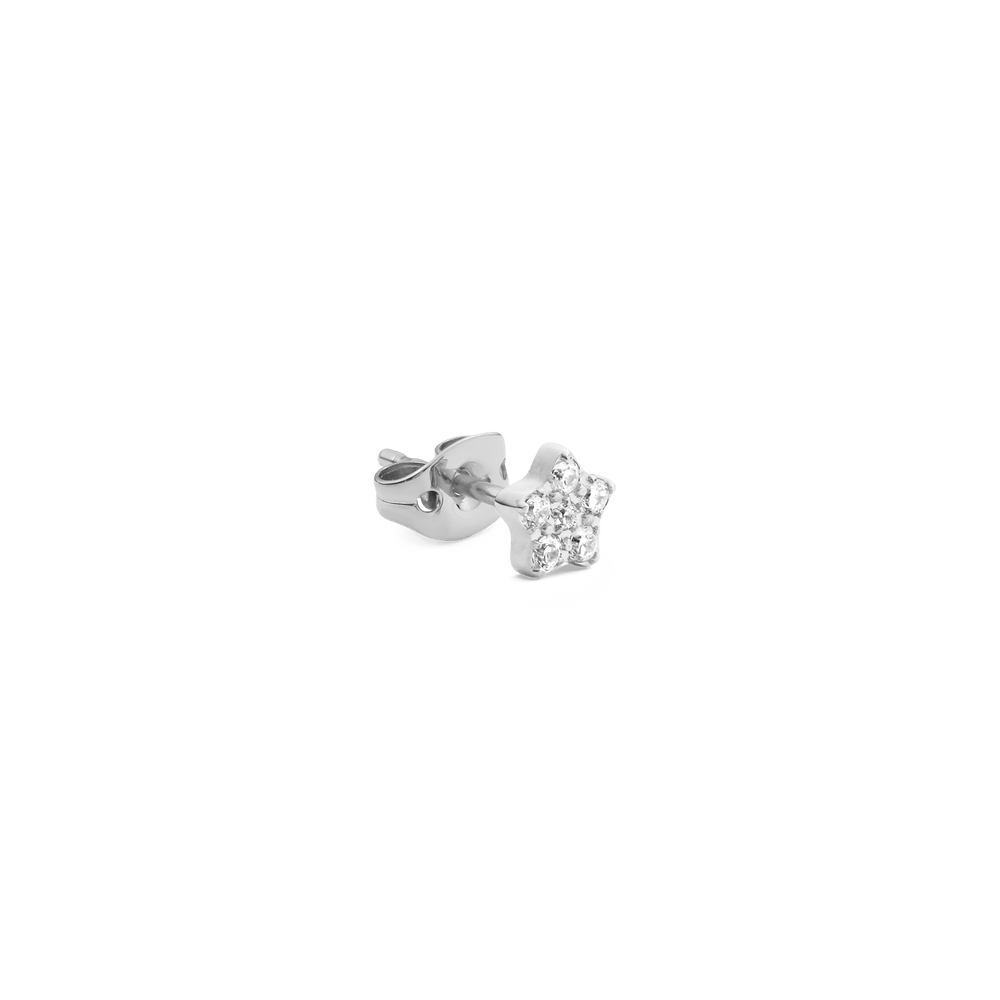 Experiment with different symbols and shapes—like these silver crystal stars—mix and match, and build a look that’s totally your own. To achieve perfectly clean edges, the crystals are placed and set with great care, in order to hide as much metal as possible.