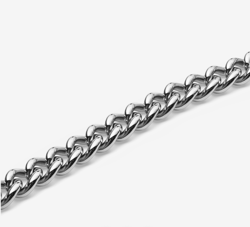 This chunky chain necklace is an everyday classic that elevates any look. A jewellery must-have with bespoke dimensions, each rounded silver ring was designed with a custom width, length, and diameter of the threads. The necklace features a fold-over clasp and carries a luxurious, yet comfortable weight—beautiful to wear with other accessories, but speaks for itself as a stand-alone piece.