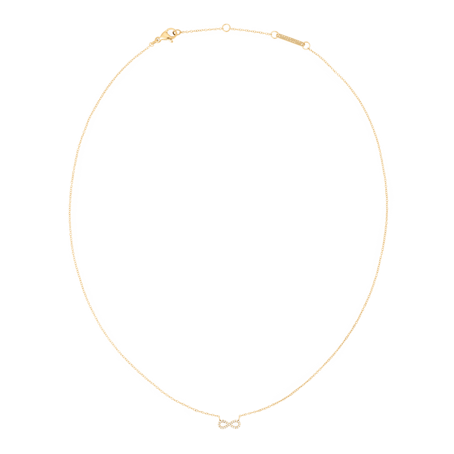 The Mirelle collection captures the elegance of minimalist design with delicate details that make a significant impact. Crafted with 0.8mm White stones and set with meticulous precision for a sparkling yet subtle effect, the infinity symbols make it easy to build your unique look. The pieces in this collection, including bracelets, necklaces, and earrings, have a refined 1.4mm thickness, offering quiet elegance perfect for everyday wear, available in Gold, Silver, and Rose Gold.