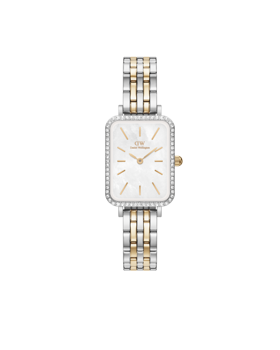 Daniel Wellington Quadro 20x26 Bezel 5-Link White Mother of Pearl Two-Tone Gold & Silver Watch