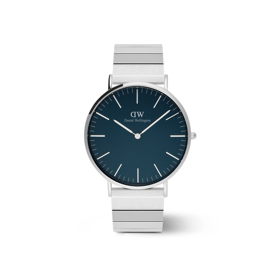 An extension of Daniel Wellington's best-selling Classic collection, but with a head-turning look of its own. This version features a brushed arctic dial and our brand-new piano link strap in silver, which is interchangeable for added versatility. That combination of brushed metal and sleek, geometric lines gives a more exclusive aesthetic for a true statement piece.