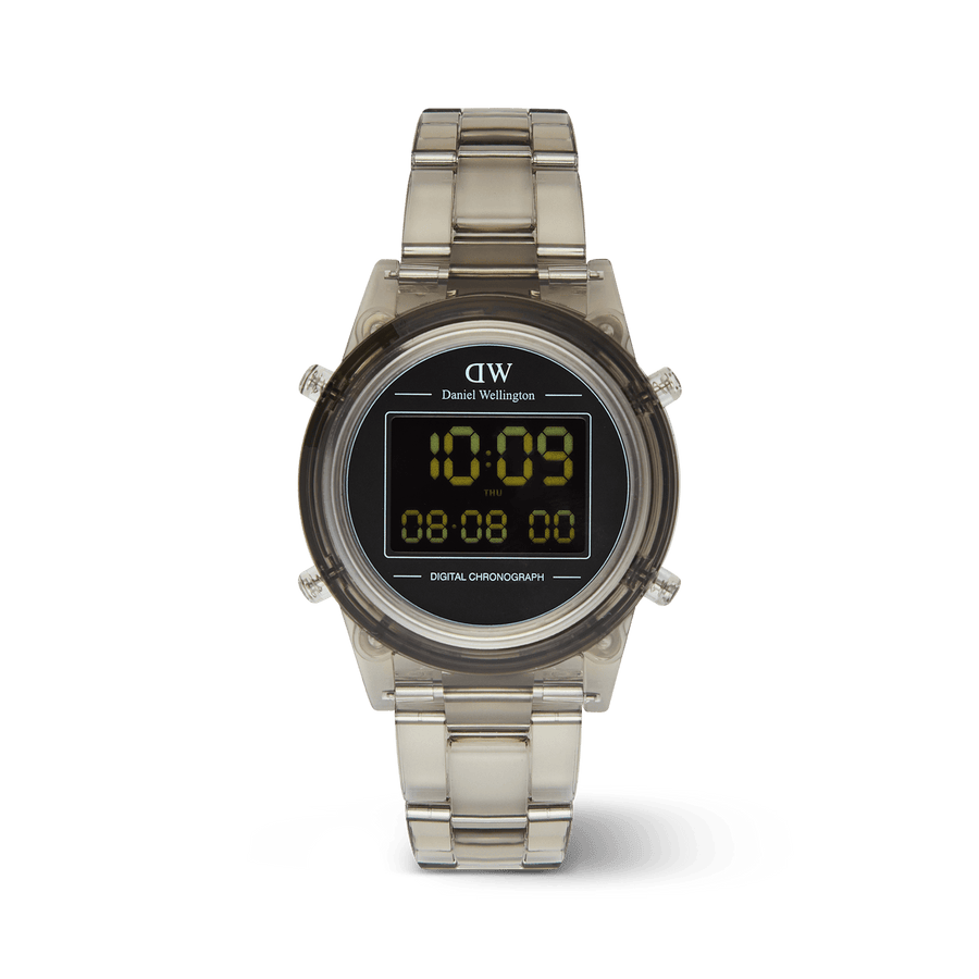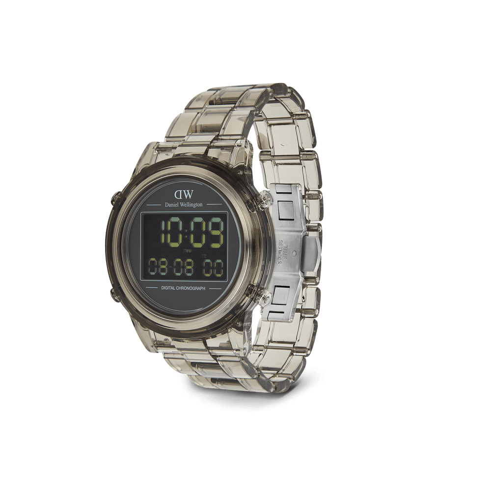 Introducing the Retro Digital Watch: a blast from the past with all the modern features you need. Crafted from transparent bio-based plastic in a cool tone colour palette, this timepiece effortlessly blends throwback charm with contemporary materials for a truly distinct aesthetic. And while its silhouette takes inspiration from our renowned Iconic Link design, we’ve gone truly digital with 10-digit dual time display, auto calendar with a daily alarm and hourly chime, and chronograph function. This light grey version is available in two sizes.