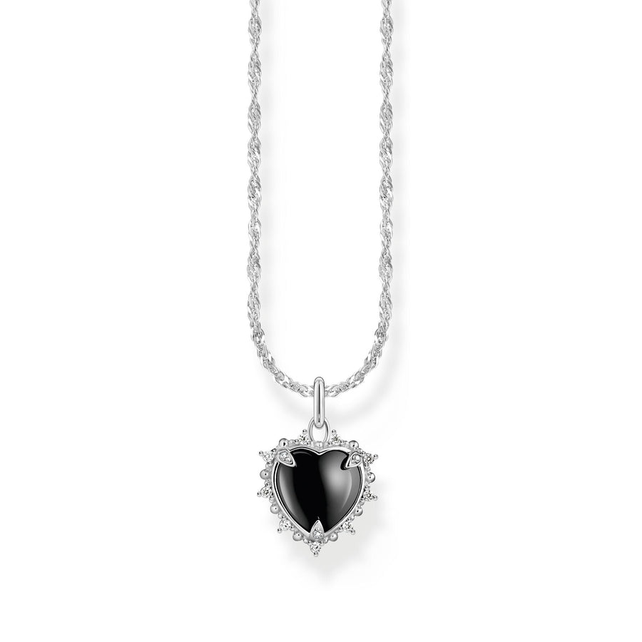 - Vintage-inspired heart pendant made of black, polished zirconia stone on a playful cord chain