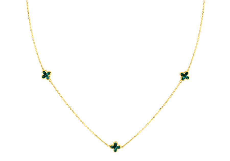 9K Yellow Gold 3 Malachite Petal Necklace 40-42.5 cm