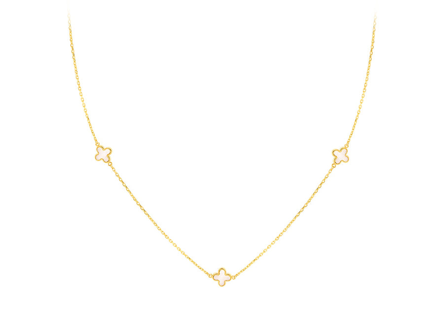 9K Yellow Gold 3 Mother-of-Pearl Petal Necklace 40-42.5 cm