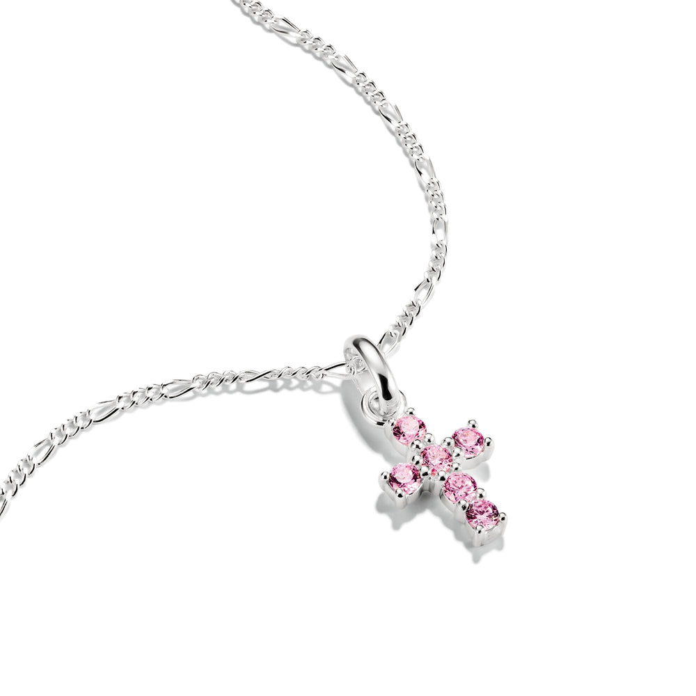 - Give classic symbols a modern twist with the cross charm, which is set with pink zirconia stones - a statement of individuality.