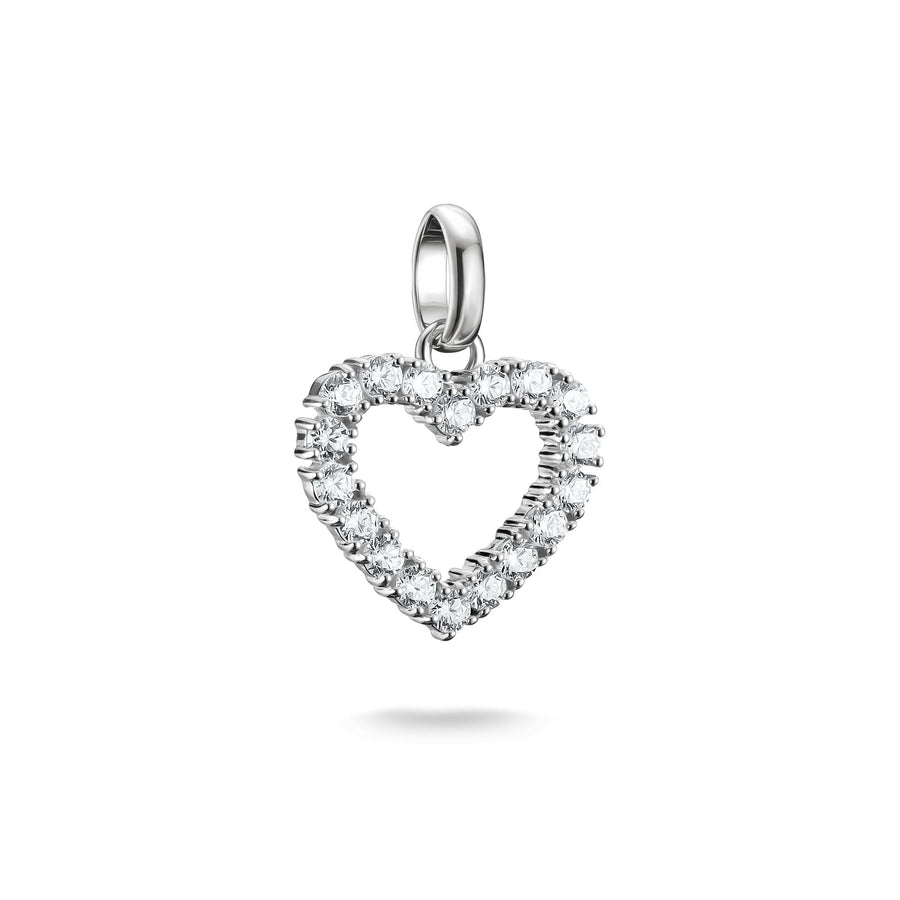 - Romantic heart charm with sparkling cubic zirconia stones in prong settings that form the heart design