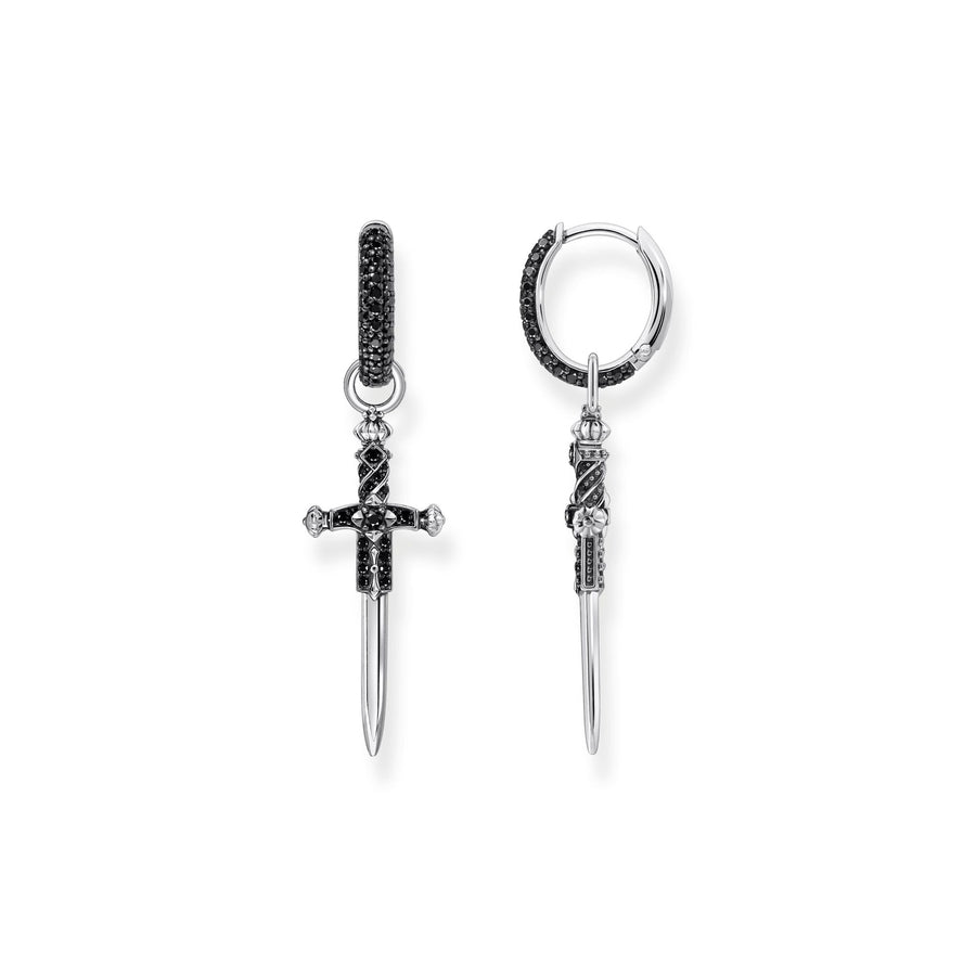 THOMAS SABO Single hoop earring with sword & black stones