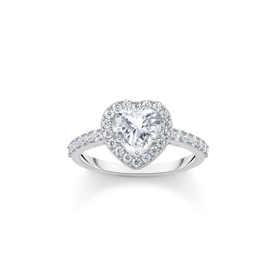 THOMAS SABO Halo ring with white, heart-shaped zirconia TR2477