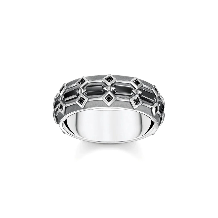 RING WIDE CROCODILE SHELL WITH STONES SILVER BLACKENED TR2422M